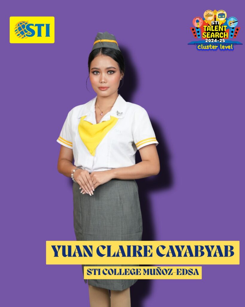 Meanwhile, the stunning Ms. Claire Yuan Cayabyab will not only try to play poise and grace but will represent STI Munoz-EDSA in the Ms. STI pageant when she competes in the National competition on November 22, 2024, at the magical Enchanted Kingdom.